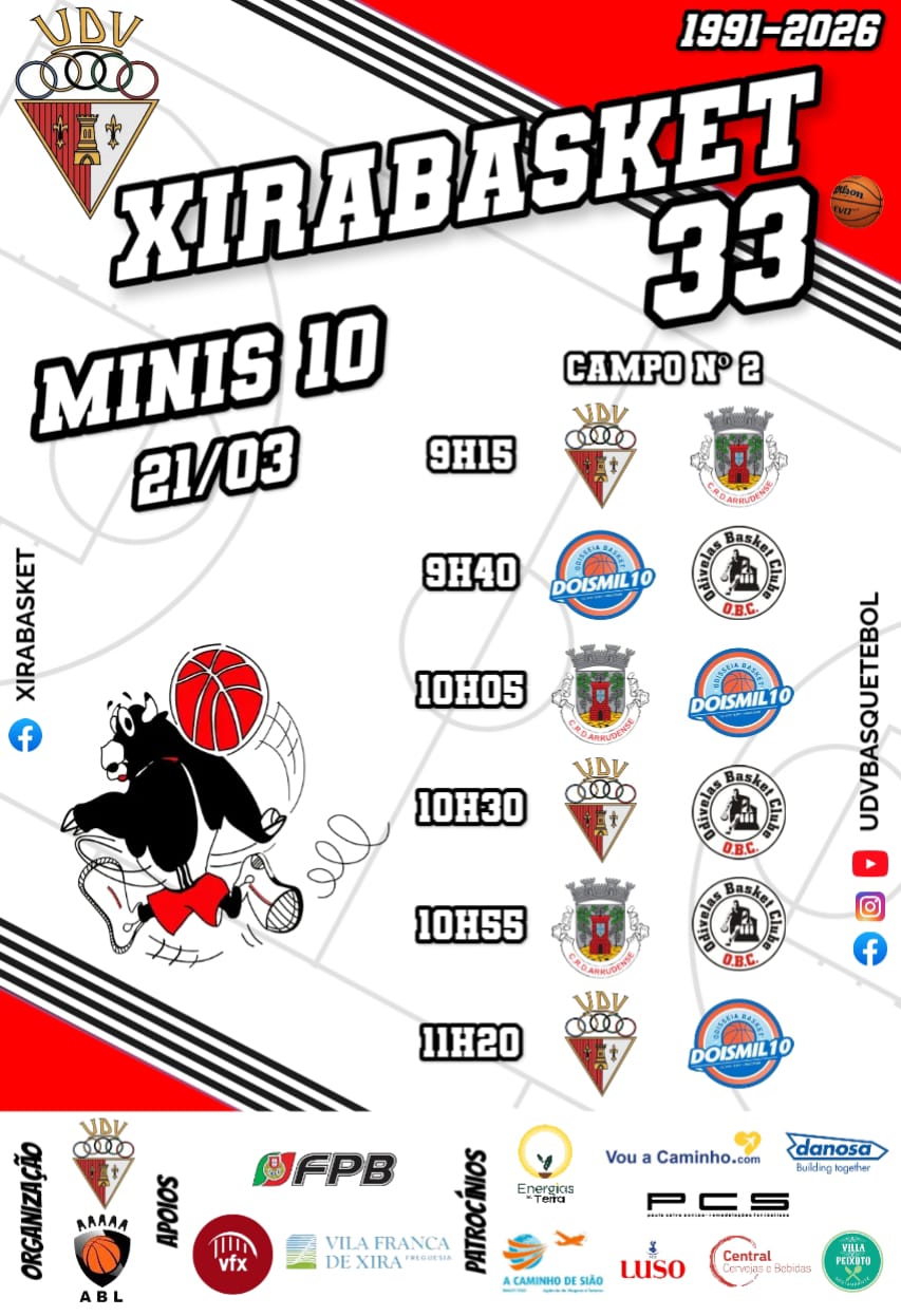 O União Desportiva Vilafranquense vai organizar um convívio MINI10 sábado, dia 21 de março, e junta vários clubes e equipas Femininas e Masculinas, no Pavilhão José Mário Cerejo.